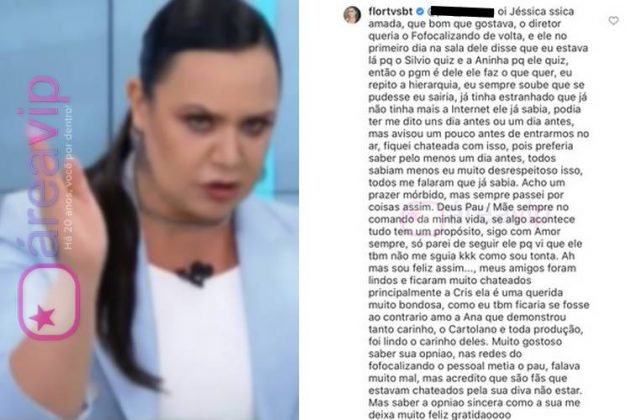 “O diretor queria o Fofocalizando de volta, e ele no primeiro dia na sala dele disse que eu estava lá porquê o Silvio [Santos] quis e a Aninha [Ana Paula Renault] porquê ele quis, então o programa é dele ele faz o que quer, eu repito: a hierarquia, eu sempre soube que se pudesse eu sairia”, disse ela, que lamentou: “Ele já sabia, podia ter me dito uns dia antes ou um dia antes, mas avisou um pouco antes de entrarmos no ar, fiquei chateada com isso, pois preferia saber pelo menos um dia antes, todos sabiam menos eu muito desrespeitoso isso”, acrescentou.
