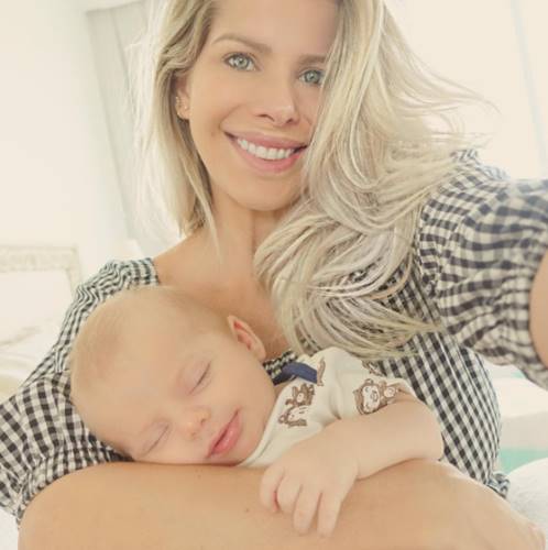 A apresentadora apareceu toda sorridente enquanto o Baby Bacchi tirava uma soneca em seu colo. “Happy baby … happy mother (Bebê feliz…mãe feliz)”, escreveu Karina na legenda da imagem.