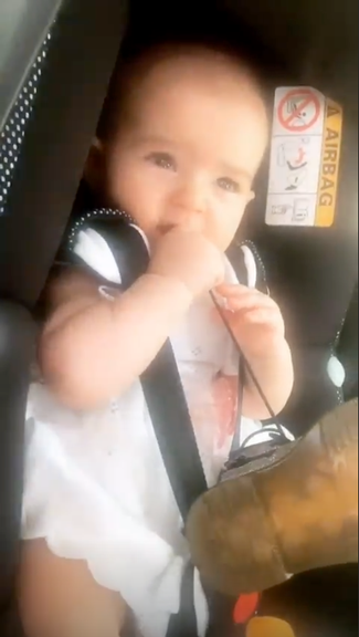 “Ela desamarrou o coturno. Né, Zoe? Já desamarrou o coturno? É isso, filha? Tira o cadarço da boca, menina!”, diz Sabrina na gravação, relacionando-se ao look para lá de estiloso, que Zoe usava.
