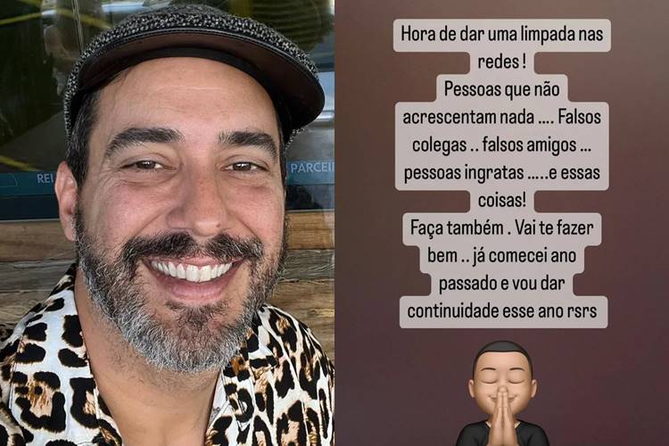 “Hora de dar uma limpada nas redes. Pessoas que não acrescentam nada, falsos colegas, falsos amigos, pessoas ingratas e essas coisas. Já comecei no ano passado e vou continuar este ano”, escreveu o ex-apresentador, em um tom direto e reflexivo.