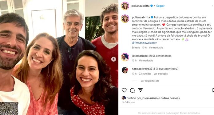 Nos comentários, Susana Vieira reagiu: “Meu sentimento de tristeza e respeito por esse seu momento Poliana querida“, disse a atriz global. “Sinto muito, Poli“, comentou a amiga de ‘Fantástico’, Maju Coutinho. “Meu carinho pra vcs neste momento Poli“, escreveu Renata Ceribelli. “Meus sentimentos e meu carinho Poli“, comentou Paula Lima. “Polli, nosso abraço para você e Chico“, escreveu Sonia Bridi.
