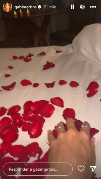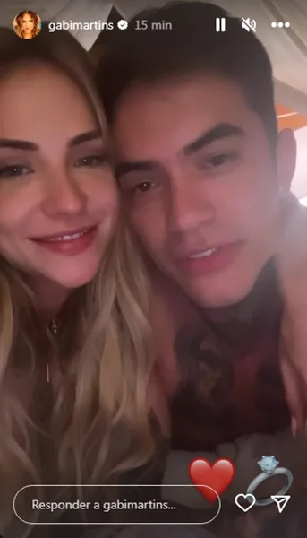 Em entrevista exclusiva à coluna Leo Dias, Gabi Martins falou sobre o pedido de namoro. “Não esperava, tô muito feliz!!! Foi uma surpresa que ele preparou com muito carinho. Ele me trás paz, leveza e tenho certeza que vamos construir uma relação de respeito e carinho. Ele cuida muito bem de mim”, declarou a cantora.