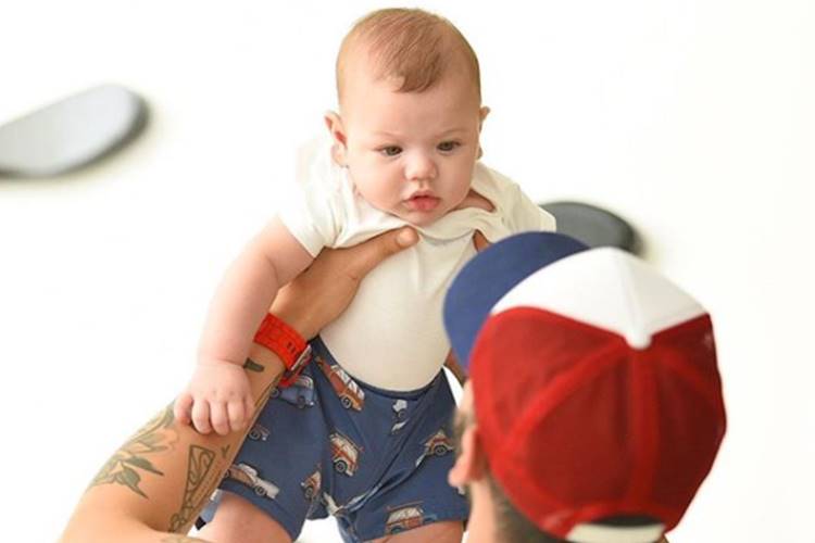 Nesta sexta, Andressa Suita, mulher do cantor, também compartilhou fotos com o bebê. Nas imagens é possível perceber que Gabriel está grandão e a modelo precisa de muita força para manter o bebê todo sorridente durante os cliques.