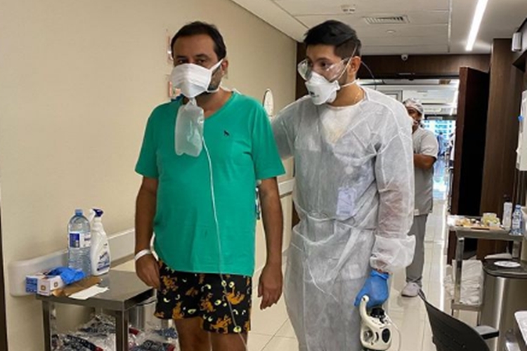 Através de seu Instagram, o apresentador compartilhou alguns cliques no hospital caminhando pela primeira vez desde sua internação no começo do mês. Ao lado do filho ele compartilhou parte do momento em que estava em pé fazendo uma breve caminhada.