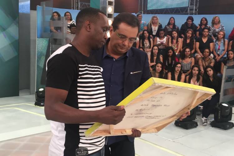 Geraldo Luís ganhou um presente durante a apresentação do “Domingo Show”, de ontem (8).