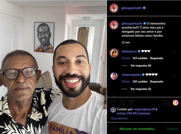 E o encontro já foi realizado. O próprio Gil compartilhou o momento com os seguidores em seu perfil no Instagram. “O reencontro aconteceu!!! Ti amo meu pai e obrigado por seu amor e por estarmos felizes como família”, escreveu na legenda.