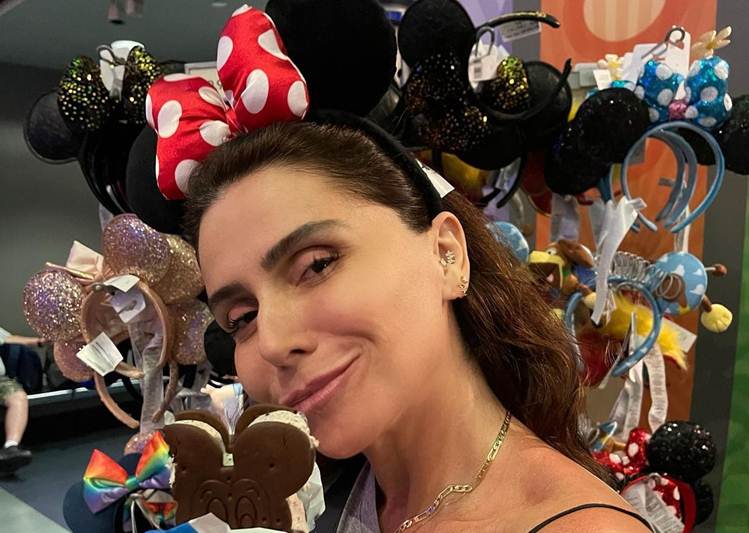 A atriz viajou para os Estados Unidos com os herdeiros e fez questão de dividir com os seguidores os momentos felizes na Disney. Nas fotos, a turma aparece em vários momentos curtindo o parque, com direito a cliques com personagens famosos, como o Mickey e Minnie.