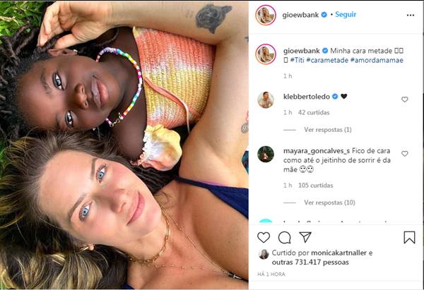 É só surgir nas redes sociais que Chissomo, mais conhecida como Titi, rouba a cena. Neste domingo (29), Giovanna Ewbank compartilhou mais um clique ao lado da filha em seu perfil no Instagram e encantou seguidores.