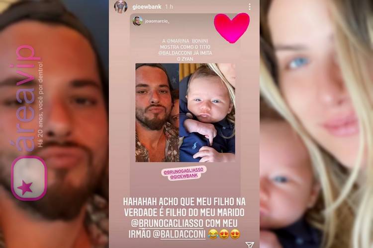 “Acho que o meu filho na verdade é filho do meu marido com o meu irmão”, escreveu, por meio do recurso Stories, aos mais de 24 milhões de seguidores. Parando para ver, se bem que são mesmo semelhantes. No dia anterior, nesta última terça (11), Gio Ewbank elevou os parâmetros de fofura ao ter posado ao lado do bebezinho, em que ainda o chamou de “pinguinho”. Lindos, né?
