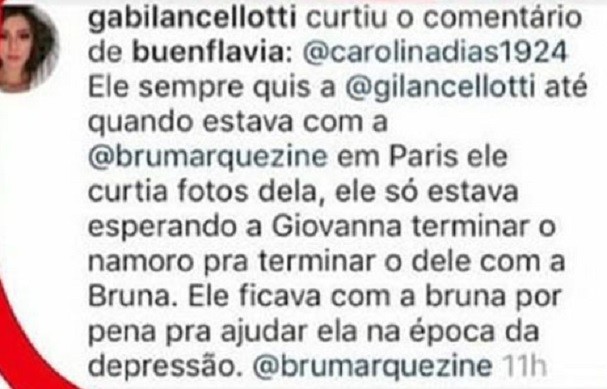 Outro questionamento foi levantado pelos internautas. A irmã de Giovanna, Gabriela Lancellotti, teria curtido um comentário que afirmava que o Neymar só estava esperando o namoro entre a atriz de ‘Segundo Sol’ e Gian Lucca Ewbank terminar para que ele pudesse se aproximar da estrela.