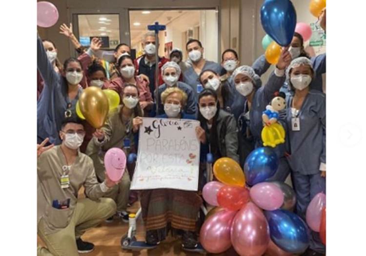 Glória Menezes recebe alta e recebe todo o carinho dos funcionários do hospital, onde estava internada.,