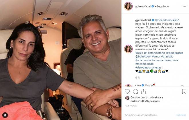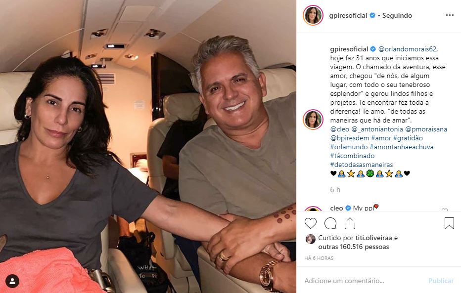 Um pouco antes da publicação de Gloria Pires, Orlando Morais postou um vídeo se declarando a esposa. “Gloria, meu amor amado, faz 31 anos que a gente tá juntos. Queria te agradecer por tanto amor, por tanta compreensão, por ser essa pessoa tão linda que você é, os nossos filhos, as nossas conquistas, o caminho que a gente pegou com a maior coragem”, falou ele.