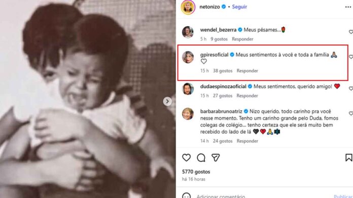“Nizo querido, todo carinho pra você nesse momento. Tenho um carinho grande pelo Duda, fomos colegas de colégio… tenho certeza que ele será muito bem recebido do lado de lá”, afirmou. “Querido, meus sentimentos. A você e todos da sua família! Que Deus conforte seu coração”, comentou Fabiana Carla.