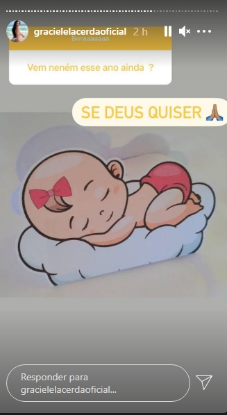 “Sem pestanejar, ela confirmou. “Se Deus quiser”, disse ela deixando os seguidores na expectativa pelo bebê.