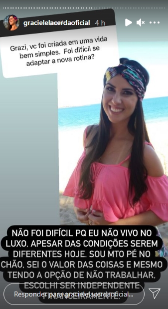 Graciele ainda relatou que começou a trabalhar muito menina e fez um desabafo sobre sua vida antes de se tornar uma pessoa pública:
