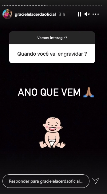 Graciele, vivendo um grande romance ao lado de seu amado, sempre que pode se declara e recebe de volta todo amor. Não é de hoje que Graciele fala em se tornar mamãe, já há algum tempo ela vem se preparando para esse momento especial na vida do casal. Inclusive a morena falou em relatos anteriores os cuidados que vem tendo para uma futura gestação.