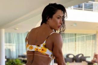 Nesta quarta-feira (29), a morena colocou o bumbum para jogo e posou com um maiô verde, cavado. Na legenda, ela escreveu uma frase motivacional: “Não se perca tentando ser melhor que ninguém, esforce-se apenas por ser e dar o melhor de você.”