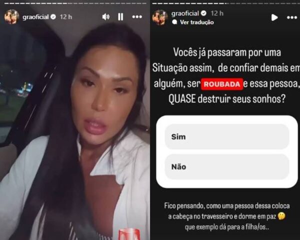 Ao fim do assunto nos stories do Instagram, Gracyanne fez uma enquete e perguntou se alguém já tinha sido roubada por uma pessoa que confiava. “Fico pensando como uma pessoa dessa coloca a cabeça no travesseiro e dorme em paz, que exemplo dá para seus filhos?“, questionou ela. O resultado da enquete não foi revelado, até o momento.