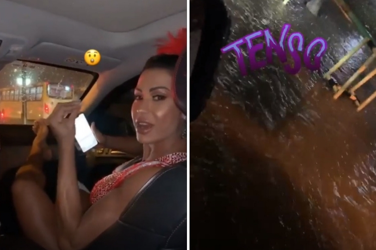 Após certo tempo no alagamento, Gracyanne desistiu e retornou para casa. Já no apartamento, ela desabafou:“Não teve gente, tentamos de todas as maneiras chegar no enasio da União da Ilha. Estou rindo mas estou arrasada”, comentou a musa fitness
