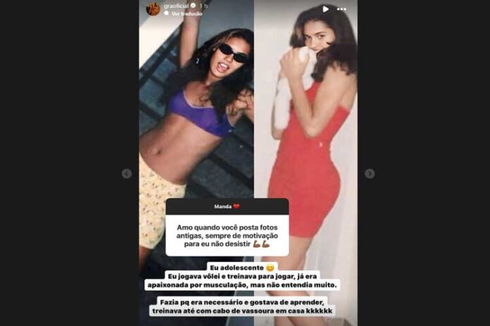 Gracyanne ainda brincou, dizendo que treinava até mesmo com um cabo de vassoura, querendo sempre aprender algo novo. “Fazia porque era necessário e gostava de aprender, treinava até com cabo de vassoura em casa”, relembrou.