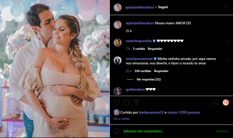 Outros seguidores da pequena celebraram espera da bebê. “ ansiosa pra acompanhar a vida dessa baby tão esperada ♥”, disse uma. Que venha com muita saúde! ❤”, escreveu outra. “Seja bem-vinda Ayla”, disse mais uma.