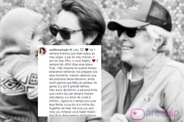 Na ocasião, ela deu maiores detalhes do sentimento inexplicável, que é a dor da partida e, inconformada, fez um desabafo emocionante na sua conta oficial do Instagram nesta última quarta-feira (20). “Luto. Há 1 semana tivemos que dizer adeus ao meu sogro, o pai do meu marido, o avô do meu filho, o vovô Ralphy. É sempre tão difícil dizer esse adeus final”, iniciou. “Não importa há quanto tempo estávamos tentando nos preparar pra esse momento, mesmo sabendo que ele precisava desse descanso, ainda assim parece que falta um pedaço da gente, e a dor é grande demais”, escreveu.
