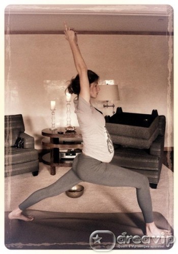 Grávida, Gisele Bündchen exibiu seu barrigão. A top postou uma foto no Facebook, meditando.