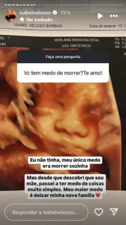 Por meio dos stories no Instagram, Isabel revelou que o bebê nascerá prematuro e que, por questões de segurança, a cesariana será a melhor escolha para o nascimento. “Como um bebê vai nascer de parto normal sem ter um risco tão grande? Se ele não fosse prematuro e estivesse bem nas minhas condições, eu poderia, sim, ter um parto normal”, explicou.