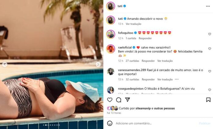 Recentemente, vale lembrar, Tati usou as redes sociais para falar da atual fase da gestação. Na publicação, a artista global avaliou as dores e delícias da primeira maternidade, com um misto de sentimentos e sensações, e não deixou de exaltar o amado, que tem sido um companheiro incrível também nesta fase da vida dela e do casal.