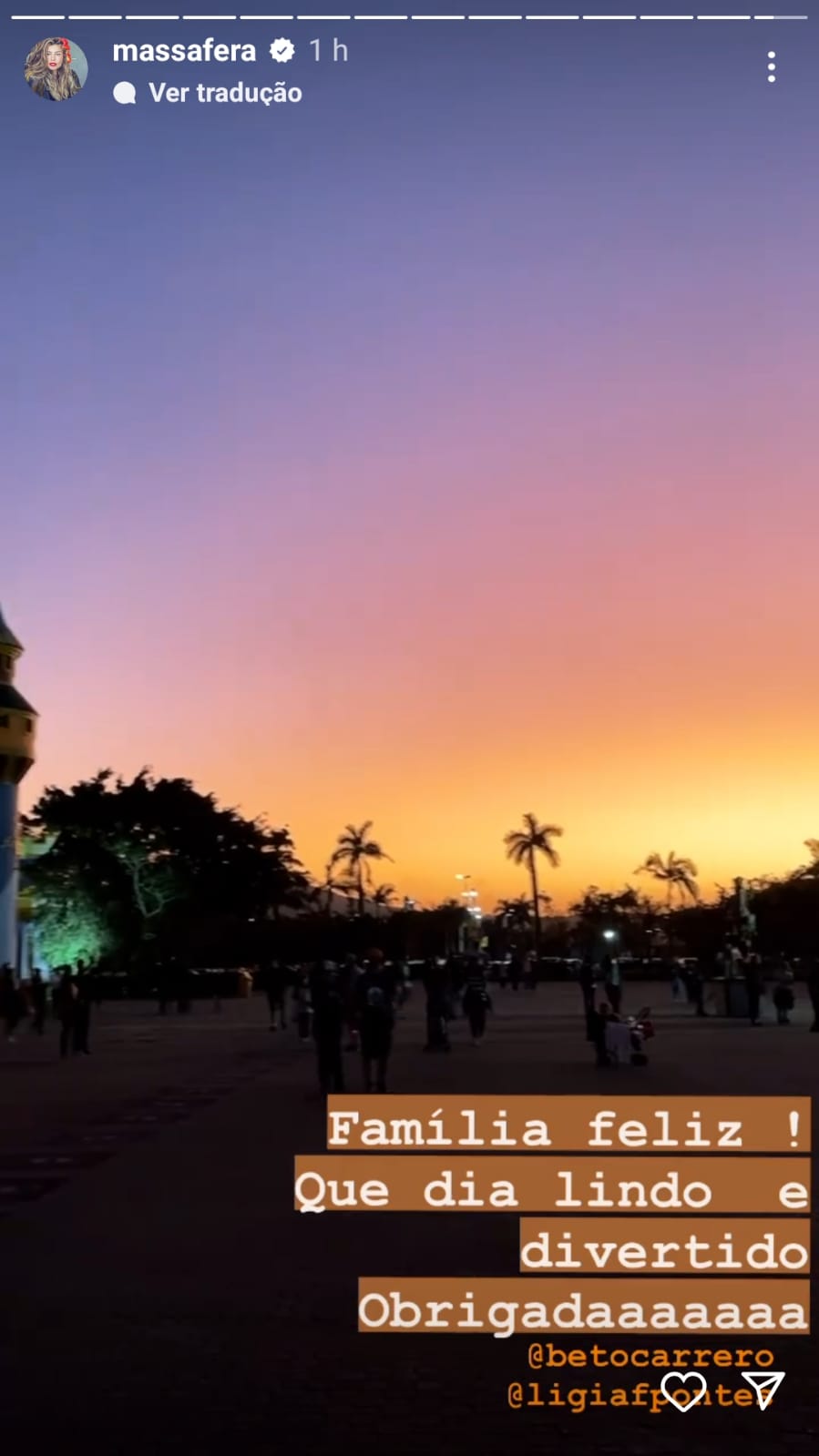 Através da ferramenta dos stories em seu perfil no Instagram, onde já acumula mais de 25 milhões de seguidores, Grazi publicou os momentos nos brinquedos e na legenda escreveu: “Família feliz! Que dia lindo e divertido, obrigadaaa” disse ela ao registrar um linda foto do por do sol. Para completar o dia a loira ainda foi gravada enquanto cantava parabéns com um bolo de aniversario na mão.