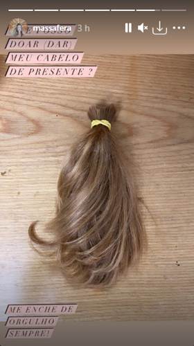 Grazi fez questão de compartilhar um post no stories onde registrou uma mecha de cabelo da pequena que será doado. Na imagem, ela contou que a própria filha pediu pra doar os fios. “Mãe posso doar (dar) meu cabelo de presente?”, pediu a menina.