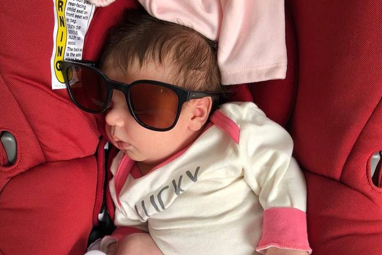 No click fofo, Marieta surge dormindo em uma poltrona vermelha, esbanjando estilo de óculos escuros. Na legenda, Duvivier aproveita para “protestar” pelo direito a licença-paternidade.