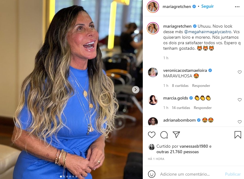 Não demorou para que fãs e seguidores lotassem a publicação de comentários de reações da web. “Maravilhosa sempre Linda”, disse um. “Ficou maravilhosa gente arrasou”, declarou outro. “Arrasou”, disparou mais um. Esses foram alguns comentários.
