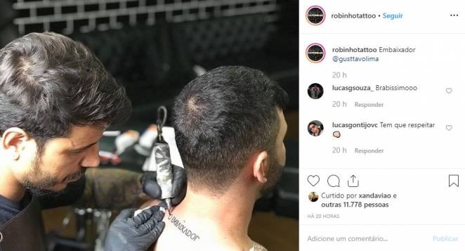 O cantor Gusttavo Lima vem fazendo cada vez mais sucesso, e não atoa tem um dos cachês mais altos do Brasil, e agora ele decidiu deixar eternizado na sua pele o nome do seu último projeto musical, O Embaixador.
