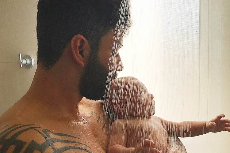 No click, o cantor aparece tomando banho com o bebê. “Nossos momentos!!! #Gabriel“, escreveu Gusttavo.