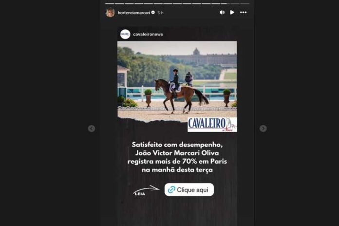 Através de Stories publicados em seu Instagram nesta terça-feira, Hortência não conteve a emoção, demonstrando sua torcida pelo herdeiro. “Estou aqui me segurando. Estou torcendo para uma boa prova. A gente sabe que é difícil, são grandes concorrentes. Minha emoção é ver ele fazendo o que ama”, afirmou.