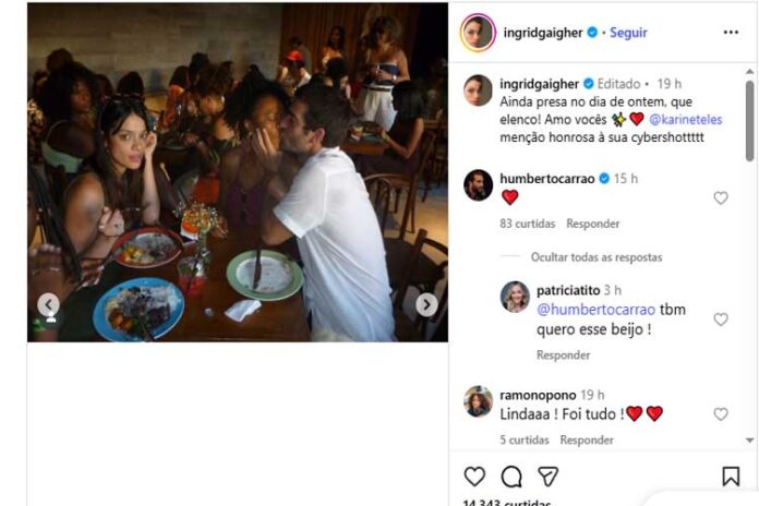 Rapidamente, vários fãs notaram o momento especial, reagindo nos comentários. “Eunice, a mulher mais invejada do Brasil“, brincou um deles. Ingrid ainda recebeu comentários elogiando o seu trabalho na novela.