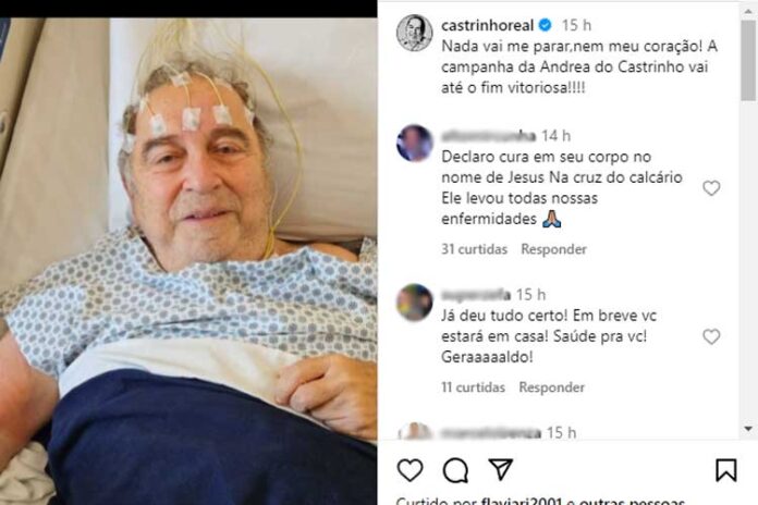 Andréa, esposa de Castrinho, compartilhou um vídeo ao lado do marido e fez um agradecimento especial a todos os amigos e fãs pelas mensagens de carinho e orações.
