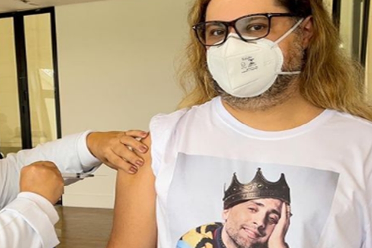 O ator foi vestido com uma camiseta que tinha estampado o rosto do amigo Paulo Gustavo, morto por complicações do coronavírus. Em seu perfil do Instagram o ator compartilhou com seguidores o momento que tomou o imunizante, e prestou sua homenagem.