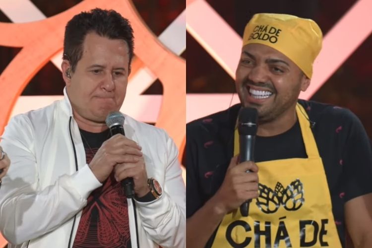 “Um beijo sem, sem marrone não é ninguém”, dizia o humorista quando tomou a atitude e tascou um beijo na boca do artista. Em seguida, ele demonstrou todo o carinho que tem por ele: “Eu gosto dele. Ele sabe que eu gosto dele Eu amo ele, eu adoro ele”, disse.