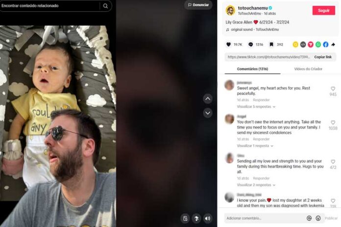 O influenciador David Allen usou as redes sociais para falar sobre a perda da filha recém-nascida, Lily, que tinha apenas 5 semanas de vida. O TikToker comoveu o público ao relatar que o nascimento da herdeira foi um dos melhores acontecimentos de sua vida.