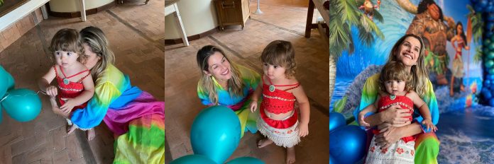 O tema escolhido foi ‘Moana – Um Mar de Aventuras’, filme lançado no ano de 2016 pela Disney, e contou muitas flores e um bolo colorido com a idade e o nome da aniversariante.