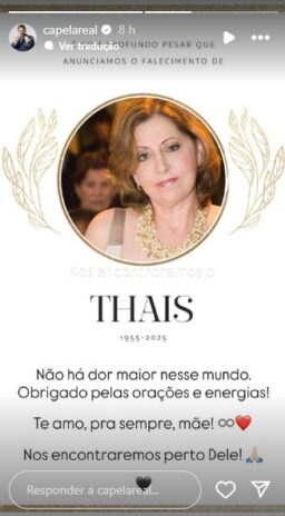 A confirmação da morte veio à tona pelo próprio jornalista que, em seu Instagram, compartilhou: “Não há dor maior nesse mundo. Obrigado pelas orações e energias. Te amo, para sempre, mãe! Nos encontraremos perto dEle (de Deus)“, publicou ele, nos stories da rede social.
