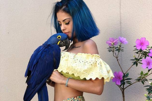 A funkeira Tati Zaqui é puro amor com sua arara azul, que tem o carinhoso nome de Yara Blue e até mesmo uma conta no Instagram.