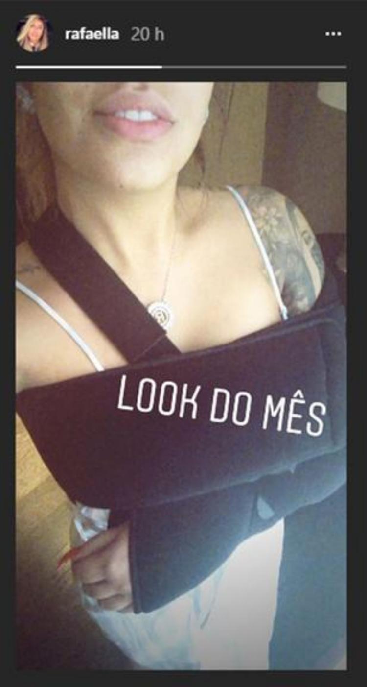 Parece que a Copa do Mundo 2018, não começou muito bem para a irmã do jogador Neymar, Rafaella Santos. Isso porque, neste domingo (24), ela apareceu de braço engessado.