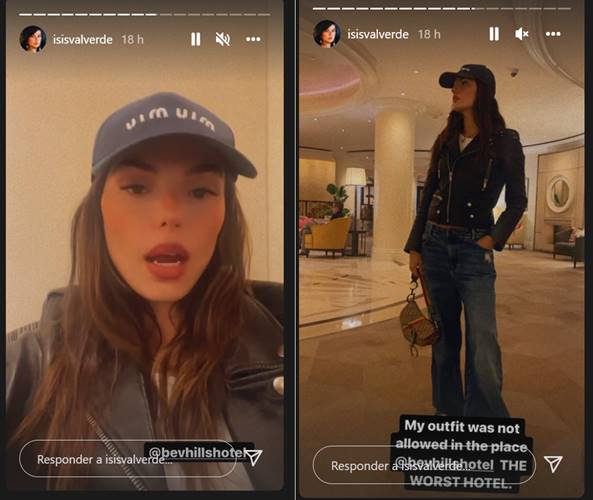 Ela ainda continuou falando sobre o fato de não estar usando roupa mais apertada: “O hotel é bizarro, trata as pessoas super mal, foram super mal educados com a gente. E tudo por causa de um jeans, porque ele queria que eu usasse um jeans apertado só porque eu sou mulher”, conta Isis.
