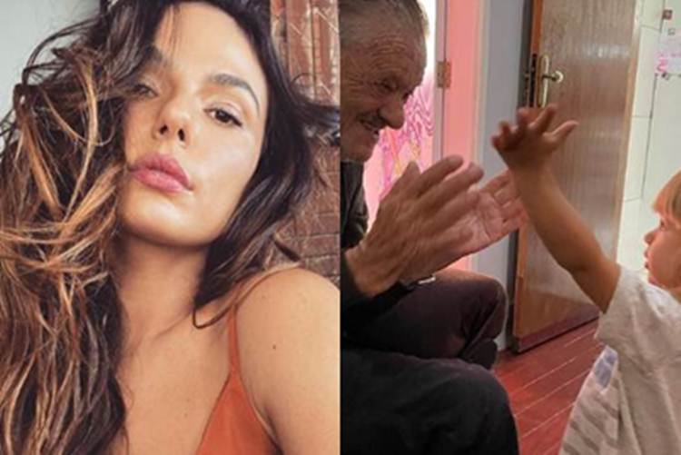 A atriz fez um post de um pássaro e mostrou o avô com o bisneto, Rael. “Acordei com um sorriso entranho, no céu alguns pássaros, mas um não voo hoje! Descobri que ele partiu cedo com a neblina”, escreveu na legenda.