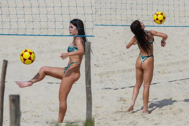 Ainda nas imagens feitas pelos fotógrafos, Jade Picon surgiu dando uma corridinha nas areias cariocas, com o corpo molhado após um bom mergulho no mar. Em seguida, ela correu pelo local, e depois a beldade de 22 anos de idade, chegou em seu destino: o campo de areia, onde realizou mais um treino de futevôlei.