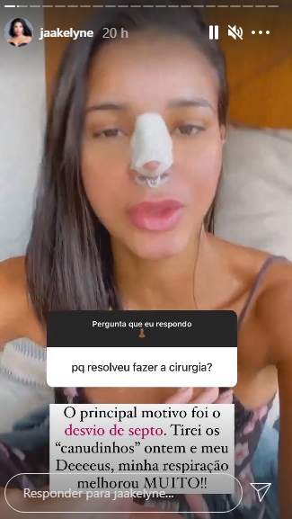 Jakelyne Oliveira, passou por um procedimento estético, uma cirurgia de rinoplastia e decidiu conversar com os fãs sobre o processo de recuperação.