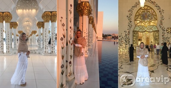 “Eu já conhecia Dubai. Dessa vez, aproveitei para incluir no meu roteiro Abu Dhabi, o grande centro financeiro político dos Emirados, que são sim, brilho, luxo, glamour, sofisticação e tecnologia”, conta Janaína Jacobina, que relembra dois passeios que mais gostou. “Adorei Ferrari World Abu Dhabi. É o maior parque temático coberto do mundo, incluindo a montanha russa mais rápida do planeta. Também é possível encontrar simuladores de corrida. É ótimo quem gosta de velocidade e para os apaixonados por Ferrari. Outro passeio fantástico é visitar Sheikh Zayed Grand Mosque, a Grande Mesquita. Mulheres não podem mostrar braços, pernas, a cabeça deve estar coberta e casais não podem pegar na mão. Caso não esteja com o traje adequado, o local tem uma espécie de burca com capuz preto para as despreparadas. O silêncio faz parte do local, a grande sala, lustres majestosos, música suave e um aroma sutil que proporciona uma sensação de paz”.